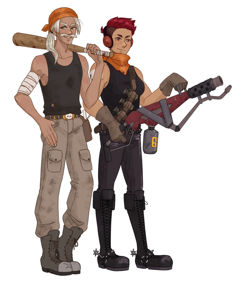 On the left are sprites created for the bandits in Keep On Track before character dialogue was scrapped. On the right is a full body sprite I created of one of my characters for a personal project.
