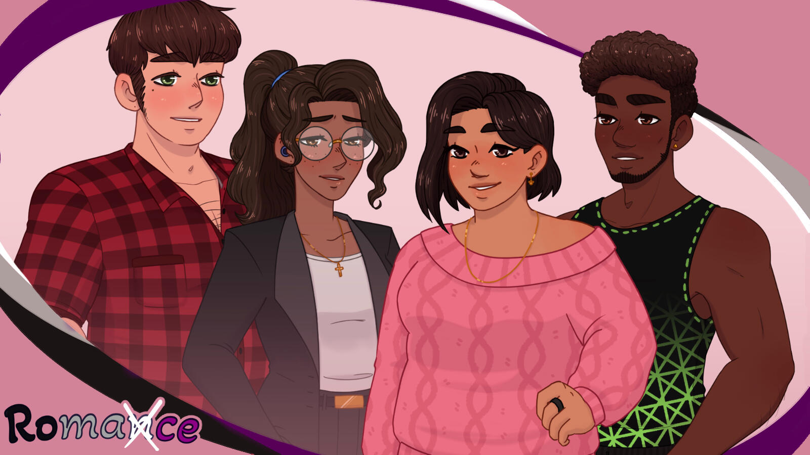 The sprites created for the protagonist and love interests of Romance include a variety of expressions, outfits and togglable features.