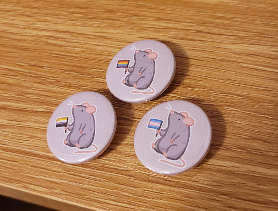 I create badge and sticker designs to sell on my Etsy, focusing on cute original art and pride themed merch. I have made over 1000 sales of my work since I started in January 2022, and aim to continue growing this audience and putting my design skills to use.